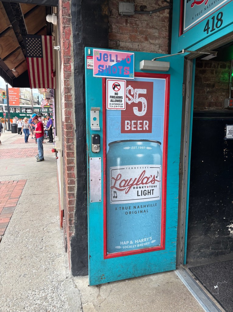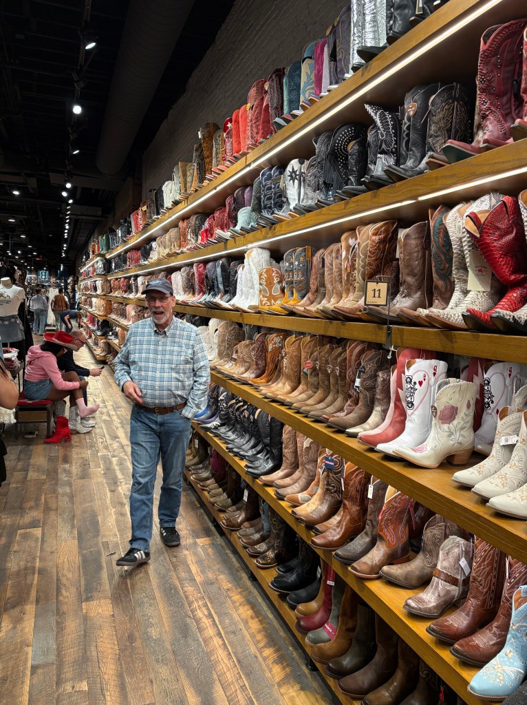 That day, we started with the lightest beer we could find and chose the music we wanted to listen to with a bit more discretion. We visited cowboy boot and hat stores…..you can’t believe the inventory that they carry. That probably explains why there are so many women walking around with blisters in their new boots! It certainly seems like theres a lot more women walking around then men. We saw so many bachelorette groups, usually dressed in color coordinated outfits. Pink and white seemed to be the most popular colors. I certainly hope when they all return home, they get to be their individual selves again.
