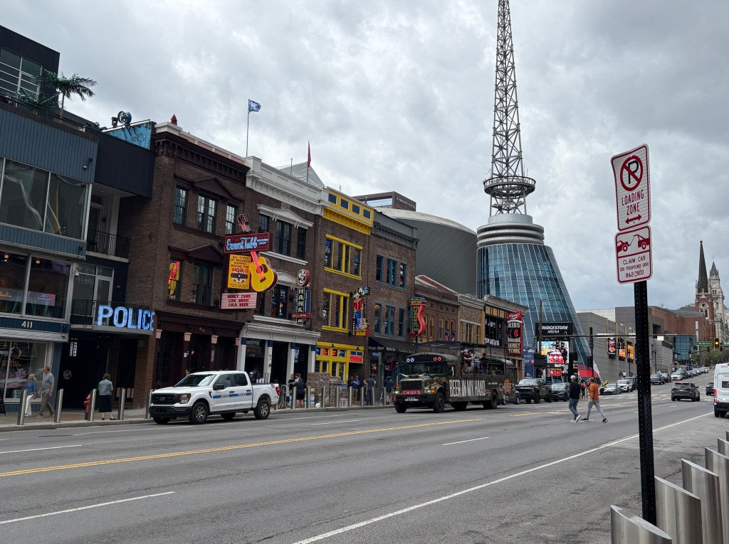 Day two, we woke up to hear that Nashville could be in for some intense weather. Hail, the size of grapefruit was expected to fall early that afternoon. We had parked out on the street in front of the hotel. The receptionist said the car would be fine there. After hearing the weather warning, we decided we would pay for parking and get our 3 week old car under cover in a parking garage. When we went out to move the car, we discovered we left the passanger window wide open overnight. OMG! Our car was filled with stuff, including an envelope with cash in it! It was all there, untouched! That speaks volumes for Nashville! It doesn’t say much about Randy and I however!