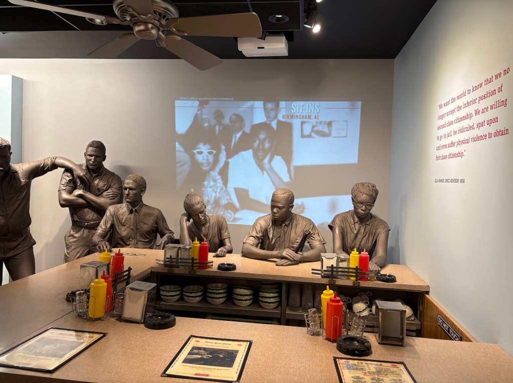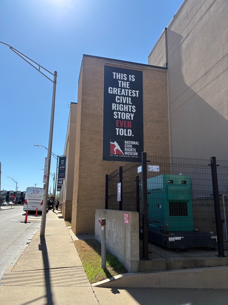 We had a great day in Memphis. We spent the afternoon at the Civil Rights museum. Neither Randy or I remembered that Martin Luther King was murdered in Memphis. The museum is housed at that same spot, the Lorraine Motel. The museum was super powerful. At the same time as we arrived at the museum, a bus was dropping off a mens college lacrosse team. We were in the exhibits at the same time and while you might expect to see cell phones out or hearing lots of chatter, the museum and the lessons we were all learning were quite somber. As we were walking back to our hotel, we said it should be on everyones must see list.