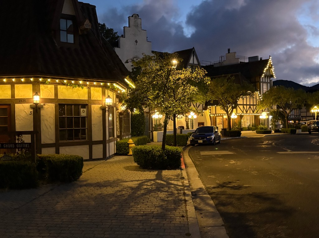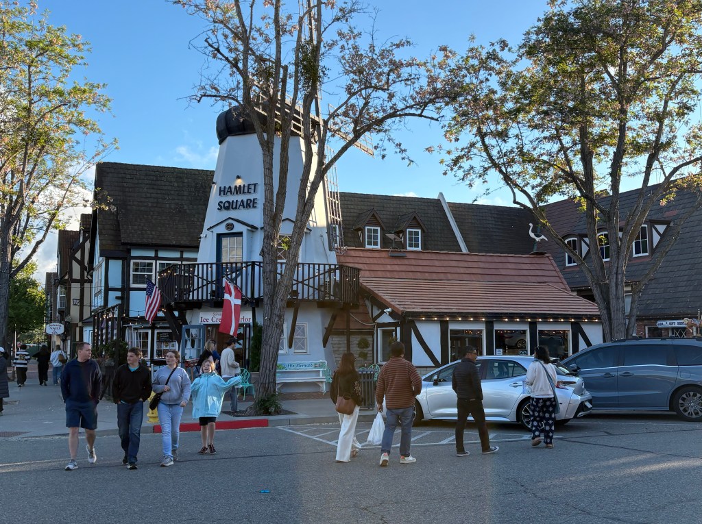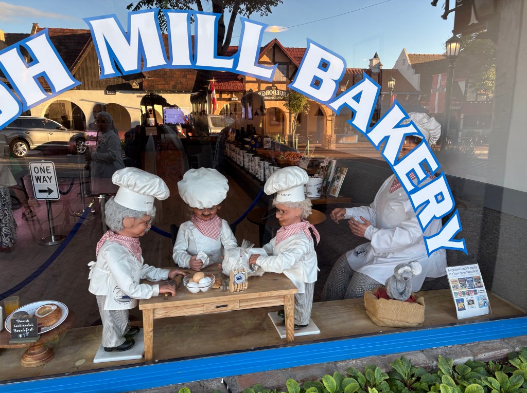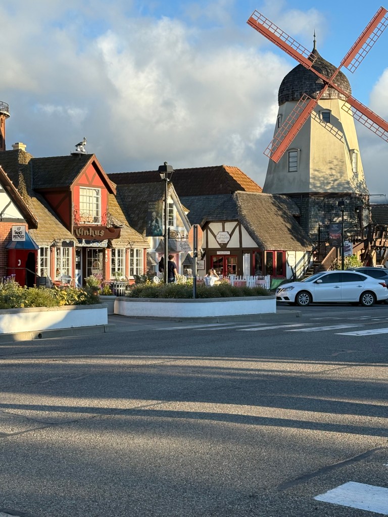 We have been trying our best to drive north on Highway 1 in California. It’s pretty sad to drive along Malibu and see all the damage caused by the wildfires. Miles and miles of chain link fence line the highway. I hope that they can restore their losses and that they escape this dry season without harm. We were both surprised how much industry along route 1, lots of farming too. We took a detour to a place called Solvang. It’s a town that was founded in 1911 by 3 Danish immigrants who shared a dream of establishing a Danish town. Well, it’s exactly what Solvang is. Its adorable and it’s hard not to believe that you haven’t been transported abroad. There’s 6 danish bakeries in this tiny town and we had a fabulous pastry before leaving town. I don’t remember how or why we found it but so glad we did!