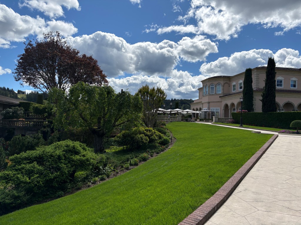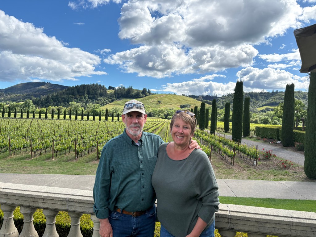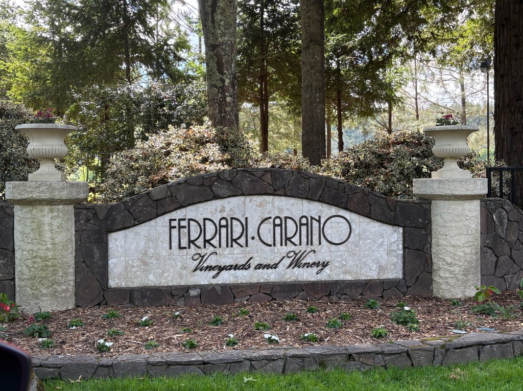 We left Monterey and headed to Sonoma to spend a few days tasting wine. Sonoma was where Mexican general Vallejo served as the bridge between the mexican colonial era and the creation of California as a state. We visited three different vineyards and one Sonoma tasting bar. We chatted with some people in the tasting bar and they gave us some great recommendations for vineyards to visit. Imagery vineyard was the first stop. ( A funny side story – a few days before, I read an article about the increase in rattlesnakes bites and 2 deaths in California this spring due to the early warm temps! I hate snakes! Actually, hate is not the correct word…I’m afraid of snakes. They seep into dreams making them nightmares that usually result in a reactionary leg cramp that wakes me and then Randy during the night. Now I am aware when I’m walking around, to be careful near rocks, plants, stumps, basically anywhere outdoors. We arrive at this vineyard and theres a beware of snakes sign on the path. I mention it to the wine steward and she proceeds to tell us how the other day, a big, fat snake came right in thru the open door and she ran right out of the back door to her car! I was happy to find a kindred soul!) We visited VJB vineyard. Two italian american brothers made plans to start a vineyard to make authentic Italian table wine for their mothers restaurant to serve. Sadly, one of the brothers died tragically and the other decided to honor the life of his brother by opening the vineyard in his name. It was like a visit to Tuscany. They had a terrace with gelato, wood fired pizzas, a food shop with olives, oils, pastas, cheeses….. all beautifully prepared and displayed. Last but not least was a stop at Ferrari Carano, beautiful gardens and terrace, lovely chilled Fume Blanc (french name with Italian grapes) and no snakes!