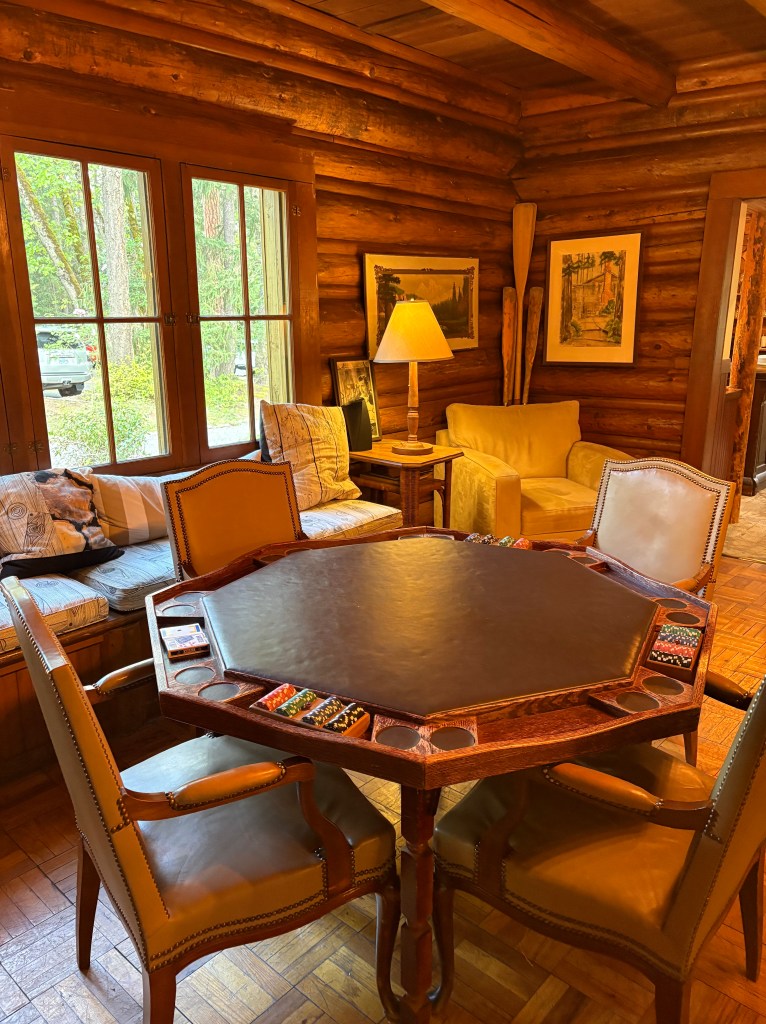 After the Redwoods, we crossed the Oregon border and planted ourselves in the Weasku Inn. This Oregon legend was built in 1924 along the banks of the Rogue River and was a vacation favorite of both Clark Gable and Walt Disney – who were avid fishermen. It was named one of the top 25 lodges in the USA. The minute we opened the door to the log building, we felt like we were back in the Adirondacks. It reminded us both so much of our friend Annies camp on Friends Lake. Annie is my brother-in-laws sister, our maid of honor and worked at Azimuth ski shop! The stone fireplace was lit, warm cookies were served and we had a great bottle of wine. It was a true feeling of home!