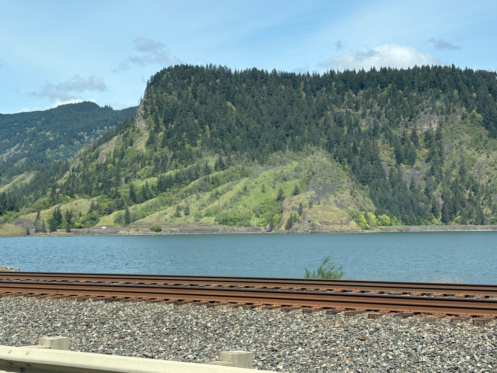 We left there and drove up to Hood River and stayed at another old Inn on the Columbia River and had dinner with some old friends – Rich and Svea. We’ve know Rich for 47 years because he too worked at Azimuth Ski shop! We attended each others weddings, and have remained good friends in spite of the 3,000 between us and always try to get together when we are in each others territory. Hood River is a very cool town with world class wind for wind and kite surfing. I was wearing a coat as we watched people out on the river blowin in the wind!