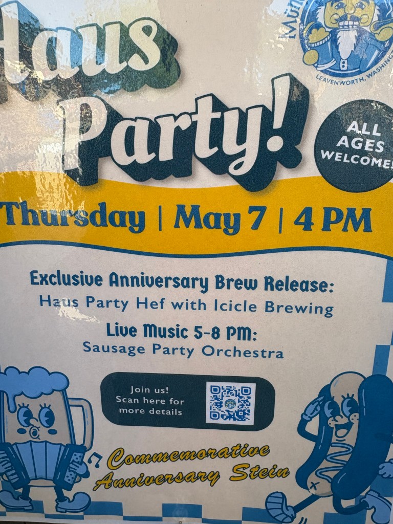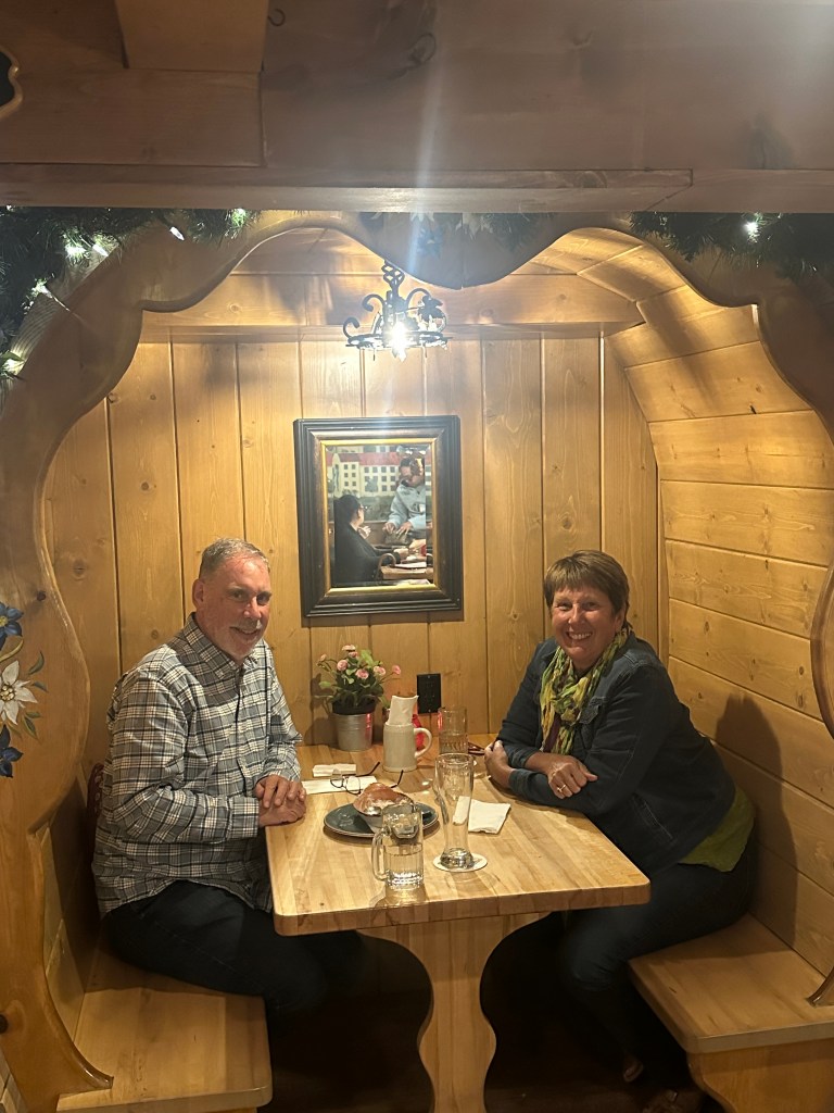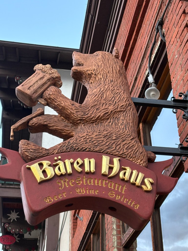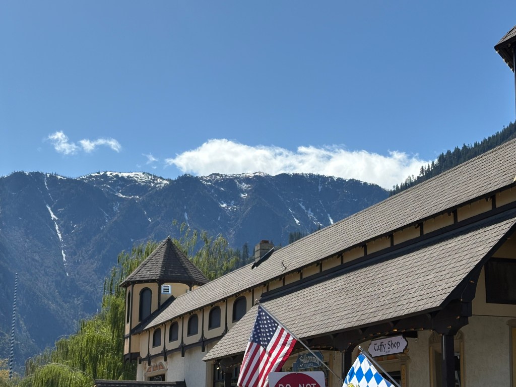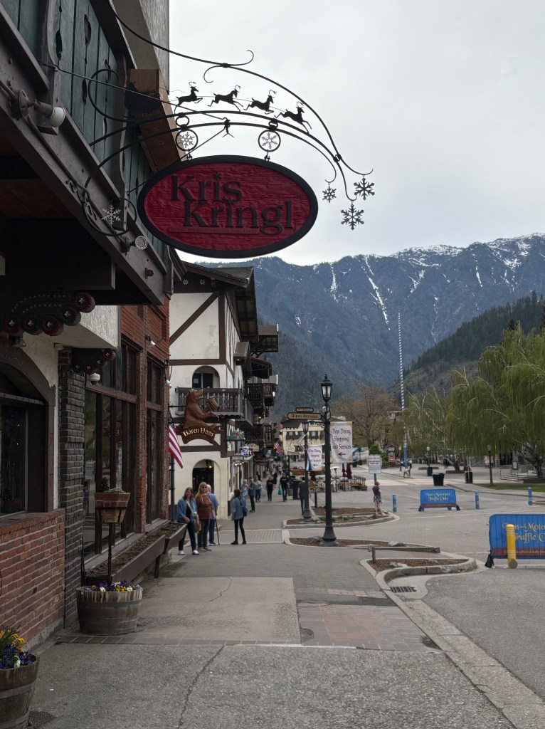 I cannot recall who we met along the way that suggested that we visit Leavenworth Washington but we are grateful they did! We were struggling to decide if we go toward Vancouver and up into Canada or to the San Juan islands. As I said, we don’t remember where we heard about Leavenworth but we decided to go northeast. After driving through miles and miles of various orchards, It was like we were transported to Germany. The mountains, the buildings, the beer, food and hospitality – that community nailed it. The community decided to reinvent themselves in the 1960’s as a Bavarian themed village to avoid near-extinction as a ghost town. Without exception, the hospitality was A+. Mopped headed teenage boys scooping ice cream knew how to engage with tourists. Everyone was engaged! We went on a lovely hike in the mountains and all I could think of was Heidi. They have a nice hike along the river that backs up to the downtown…..sound familiar Ticonderoga? Of course we engaged the owners of the Inn that we stayed at as well as the Chamber people that were touring the inn and apparently, the school district includes hospitality training k-12. They were also very supportive of supporting each other locally too. The Inn serves the coffee from the roaster in town, etc. We had fabulous german meals there, great beer and two surprising wine tasting experiences. We liked it so much that we decided to stay another day. Our Inn wasn’t the fanciest in town, but it was the most authentic. Even the carpeting was flown in from Germany. The owners (3rd owners) were a younger couple from Poland/German boarder and she was from Transylvania. I don’t think I have ever met anyone from Transylvania! Don’t worry, no vampire fangs! They were lovely and have created a truly special experience for their guests. Leavenworth was so much more than we thought and I can’t imagine anyone not enjoying a visit!